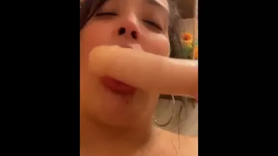 CHEATING HORNEY Latina sucks and deep throat’s dildo