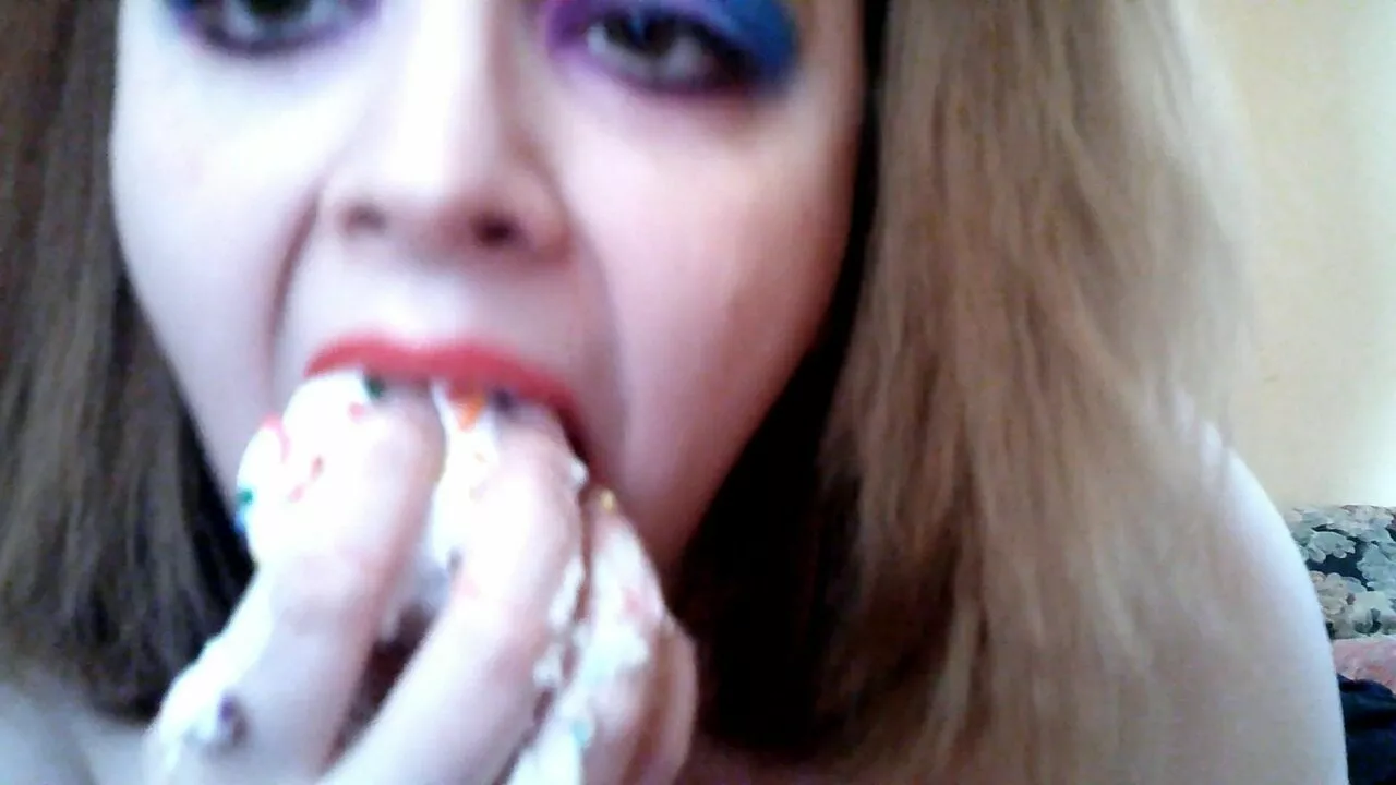 Chubby babe rubs and mashes cupcakes on tits