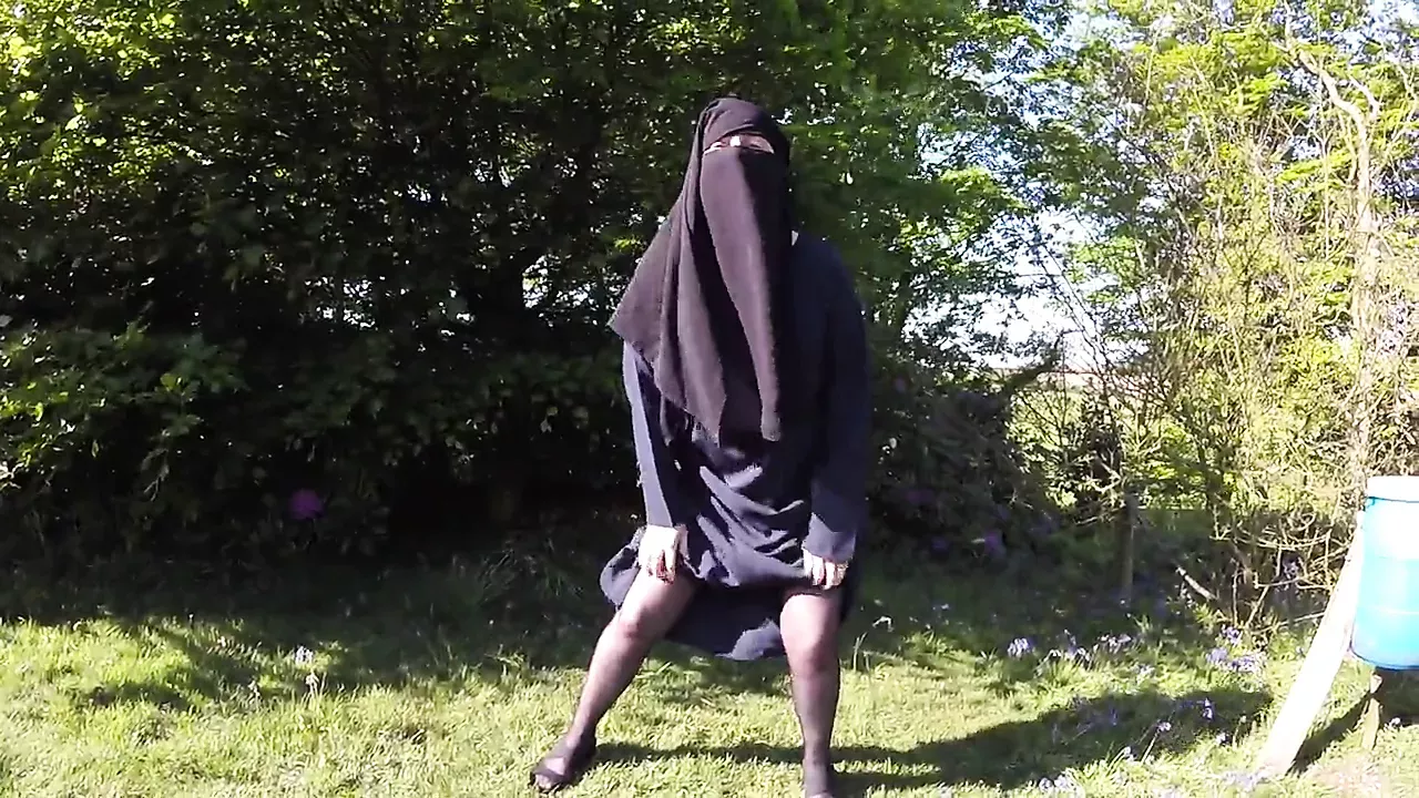Muslim in burqa and stockings – flashing outdoors