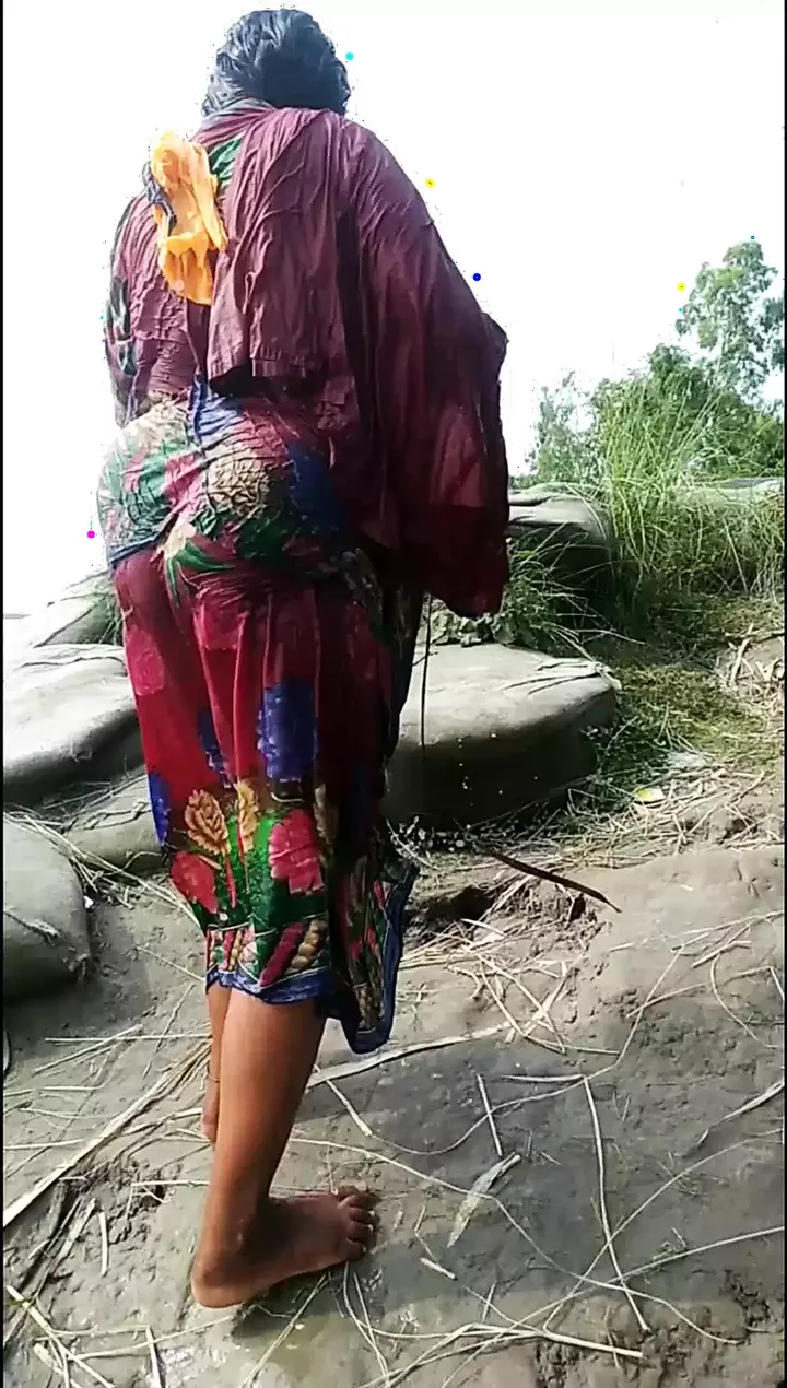 My fat wife He is take a shower in river
