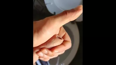 10mmのメタルプローブを尿道に入れる様子をドアップで撮影。A video of a 10mm metal probe being inserted into the urethra.